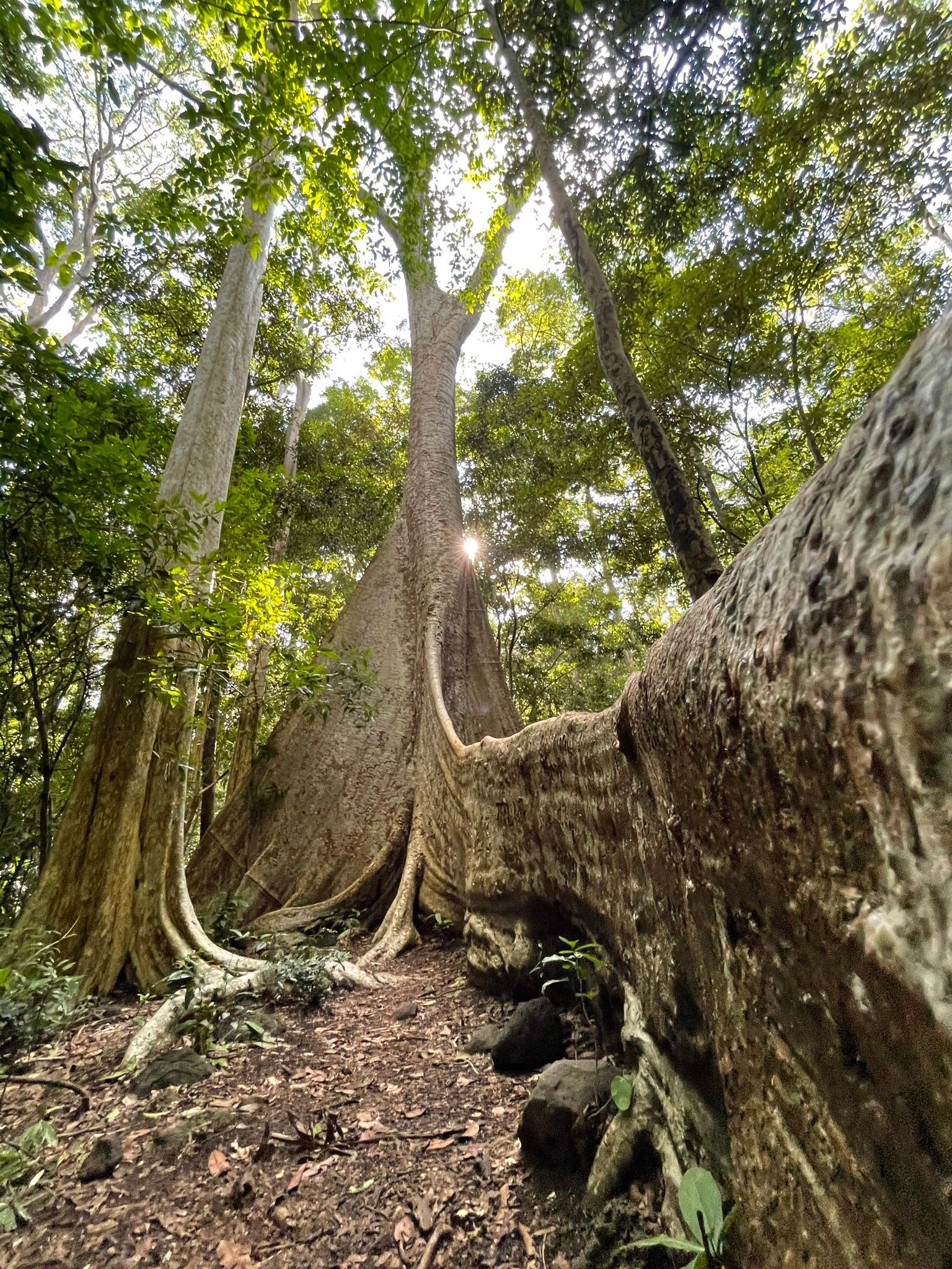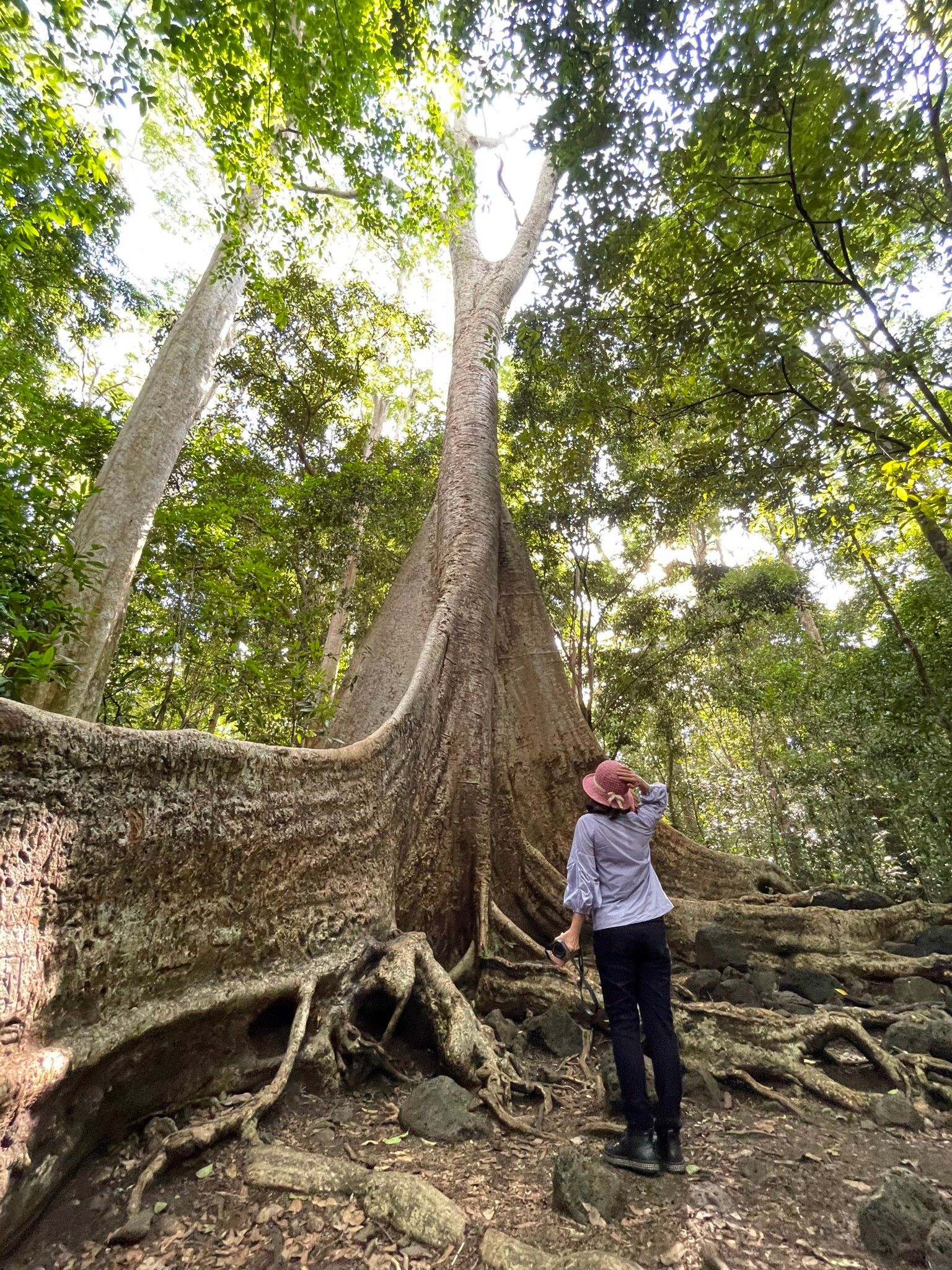 Cây Tung khổng lồ hơn 400 năm tuổi với nhánh rễ dài hơn 10m trồi lên trên mặt đất.